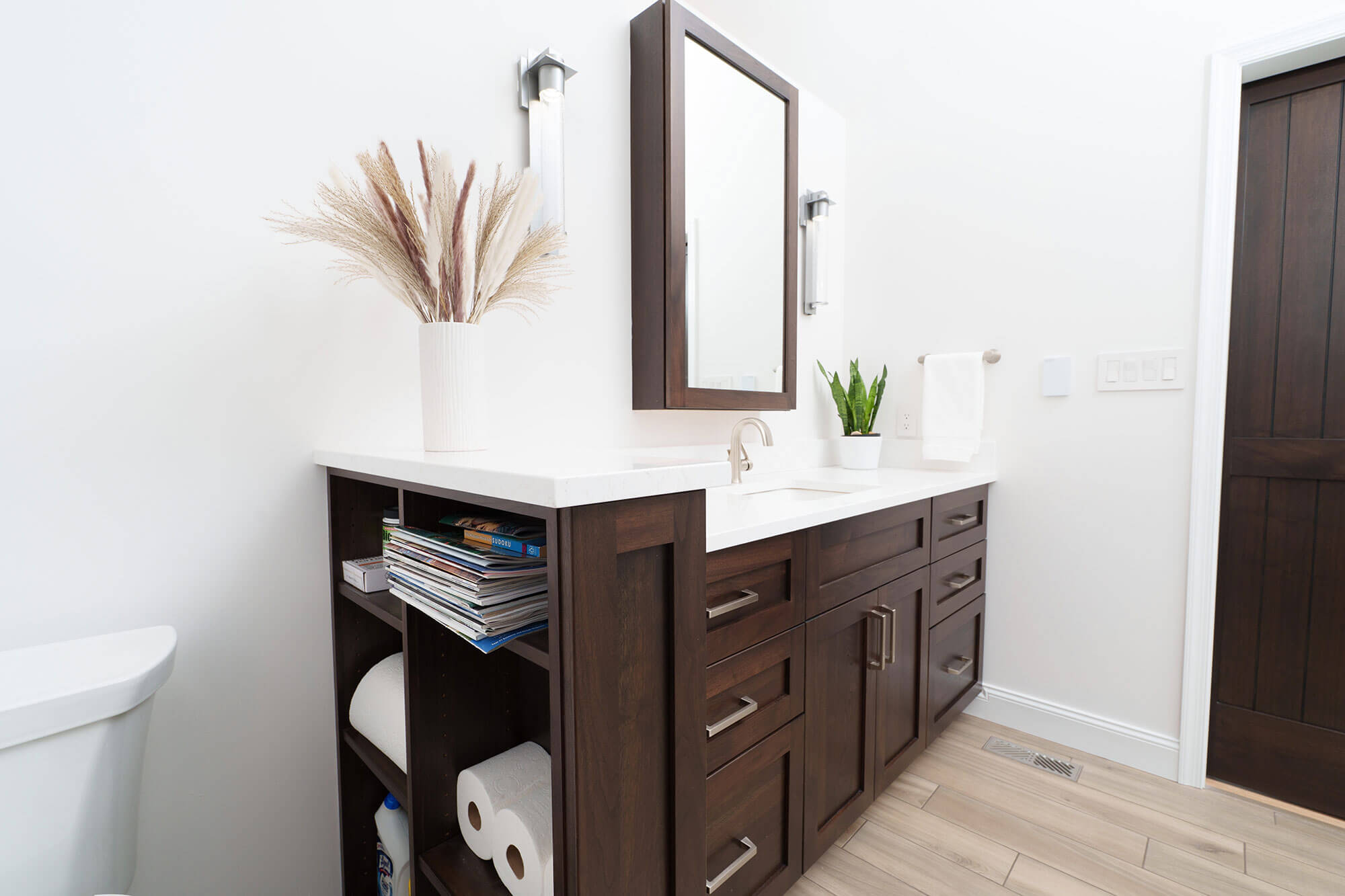 This whole house remodel features custom cabinetry in the kitchen, laundry room, bathrooms and mudroom! Shaker style with a 1/2" overlay, all of the cabinetry is painted white with a silver glaze. It's sure to be the highlight of this gorgeous home! |